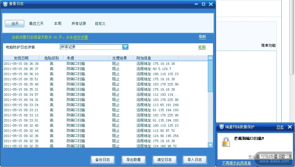 本机端口频繁被扫描就会触网络数据防护功能,因为问题来源不是本机,所以只能开启网络数据防护功能。