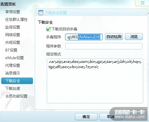 操作:关联 迅雷自动杀毒 ,点击 迅雷的 自动检测