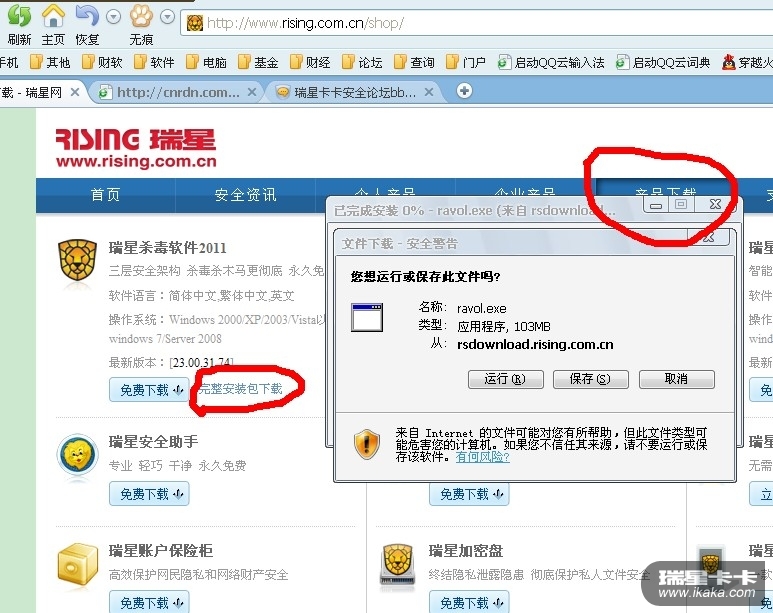 瑞星杀毒软件独立安装包大小101MB,标记为:RAV