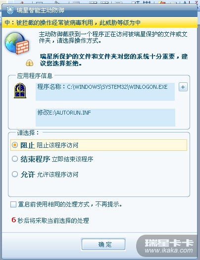 开机后瑞星弹出提示:c:\windows\system32\winlogon.exe      c:\autorun.inf      然后D、E  F盘都会出现,无法查杀,请问是何原因?