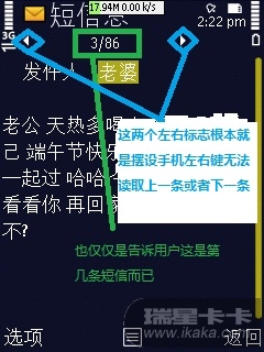 左右标志根本就是摆设,用手机左右键无法读取上一条或者下一条,只能返回拦截收件箱