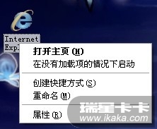 我桌面上本来没有IE图标的,今天一开机发现有了一个IE图标,无法删除。点击右键显示:“打开主页、在没有加载项的情况下启动、创建快捷方式、重命名、属性”,没有删除选项。点击属性,出现“Internet属性”,双击IE图标打开的是空白页。