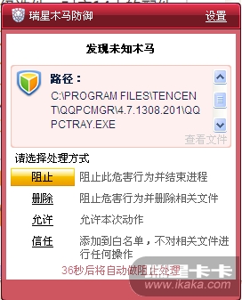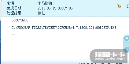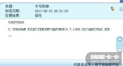 请右击托盘处的瑞星监控/查看日志/备份日志,将日志导出为DB格式的文件压缩后上传,同时请提供日志中涉及到的QQ管家文件及您的瑞星软件版本号。