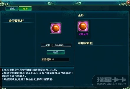 注意事项—唤灵所需要的材料:招募卡、灵根丹或仙根丹