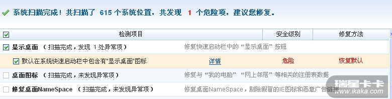 然后在我选择修复之后,快速启动栏里的显示桌面就没有了……