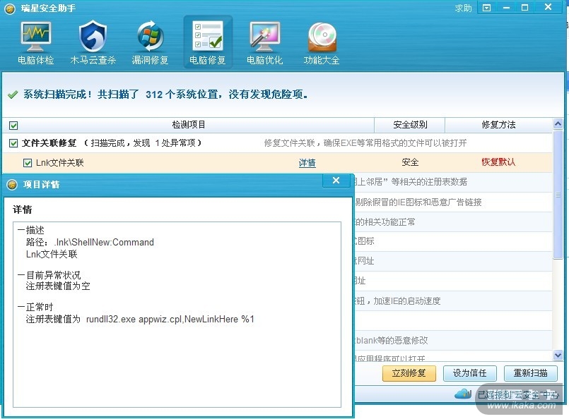 无法修复是修复完成了再次扫描还有嘛?瑞星安全助手版本是多少?