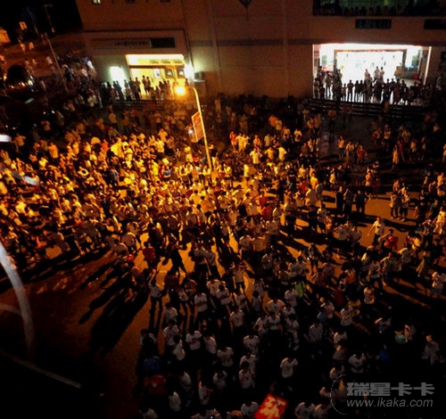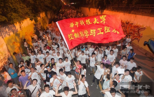 6月19日晚,华中科技大学格外“凉爽”,该校毕业晚会《同歌同行》结束后,几十个院系的数千名学生,举着红旗,喊着口号,在夜色中开始了毕业泼水大狂欢。
