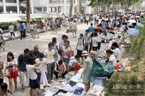 济南,在山东大学中心校区,毕业生们在低价甩卖物品。