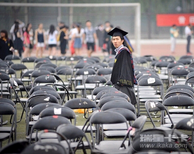 天津商业大学毕业典礼结束后,一名学生徘徊在会场,不愿离去。