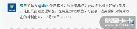 来自官方微薄的瑞星2012的信息