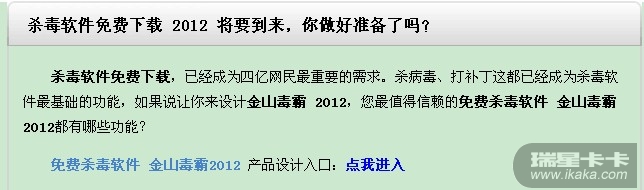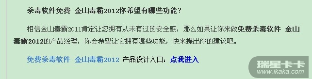 难道瑞星不可以开展个收集瑞星2012的建议吗? 这样才让用户有积极心 瑞星都没得这样的积极心 用户更没了 。。。。