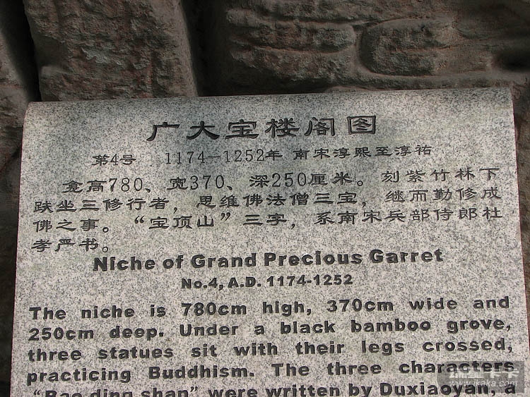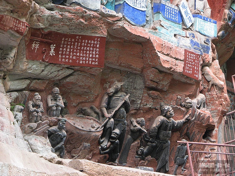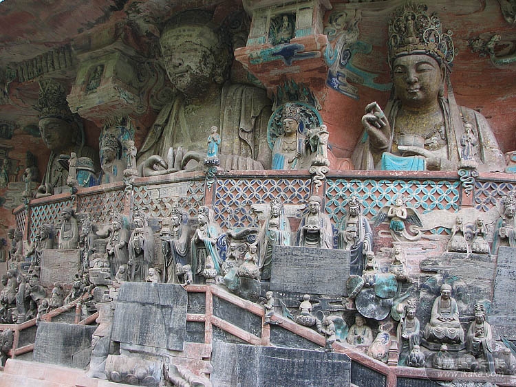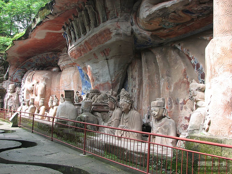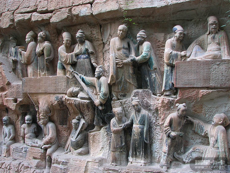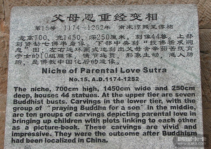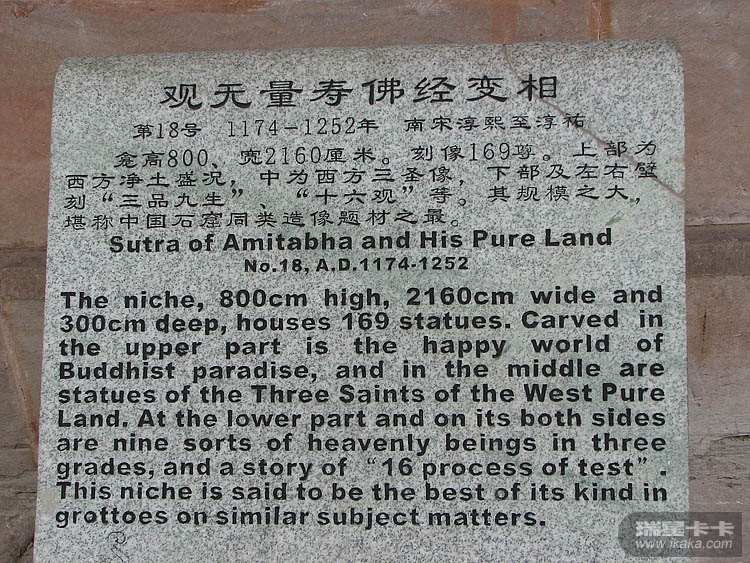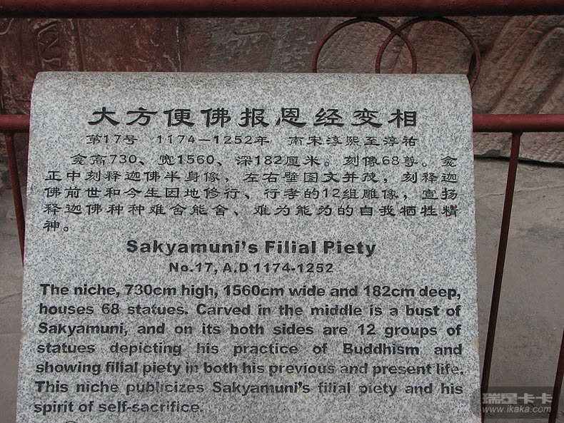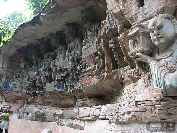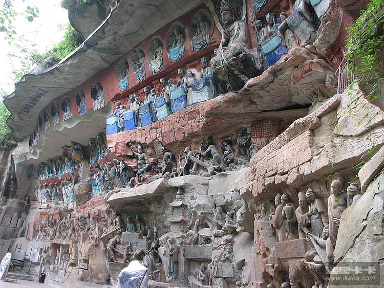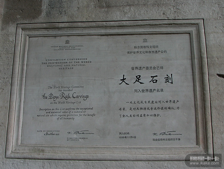 1999年12月1日在联合国教科文组织世界遗产委员会第23届会议上表决通过,将重庆大足石刻中的北山、宝顶山、南山、石篆山、石门山五处摩崖造像,正式列入世界文化遗产,重庆大足石刻进入《世界遗产名录》的行列。 大足石刻位于重庆市行政区域内,以大足县、潼南县、铜梁县、壁山县为范围,在此地可赏到代表中国唐、宋时期的石刻造像艺术。大足石刻是大足县境内主要表现为摩崖造像的石窟艺术的总称。大足石刻群有石刻造像70多处,总计10万多躯,其中以宝顶山和北山摩崖石刻最为著名,其以佛教造像为主,儒、道教造像并陈,是中国晚期石窟造像艺术的典范,规模之宏大,艺术之精湛,内容之丰富,可与敦煌莫高窟、云冈石窟、龙门石窟齐名。 大足石刻因地处中国内地山区,过去交通不便,幸免了历代战争的浩劫和人为破坏,具有很高的文物、雕刻和旅游价值,尤以北山摩崖石刻和宝顶山摩崖石刻最集中。 宝顶山摩崖(石窟)石刻距大足县城东北15千米,石刻创始人为宋蜀中名僧赵智凤,建于南宋淳熙六年至淳祐九年(1179—1249年),历时70多年,石刻共13处,造像数以万计,以大佛湾和小佛湾规模最大。宝顶山是佛教圣地之一,有“上朝峨嵋,下朝宝顶”之说。 大佛湾为幽深的马蹄形山湾,雕刻分布在东、南、北三面,先以小佛湾为蓝图,后在此雕造。由19组佛经故事组成的大型群雕,各种雕像达15O00多躯,设计之精巧,竟无一雷同,破了“千佛一面”之说。宝顶圆觉洞,为整石开凿,宽敞如室。洞正壁刻佛像三尊,主佛前有跪菩萨一尊,俯首合十,恭敬虔诚,左右壁为十二圆觉菩萨,跌坐莲台,妙丽庄严,姿态不一,衣服、肌肉质感真实,似薄纱突身,衣裙流畅自如。壁间刻楼台亭阁,人物鸟兽,花草树木,幽泉怪石,近似写实作品,是大佛湾雕刻的精华。巨型雕有30多幅,著名的有:六道轮回、广大宝楼阁、华严三圣像、千手观音像、释迦涅槃圣迹图、九龙浴太子、孔崔明石经变、毗卢道场、父母恩重经变像、大方便佛报恩经变像、六耗图、地狱变像等,以佛经故事为主要题材,造像旁还刻有经文、颂词等文字说明,宛如一幅幅图文并茂的连环图画,是不同于中国其他石窟的显著特点。 由于照片有60多幅,我陆续上传吧!用户系统信息:Mozilla/4.0 (compatible; MSIE 7.0; Windows NT 5.1; Trident/4.0)