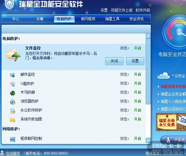 如上图所示,依次闭瑞星防火墙的监控功能看由哪项功能引起此问题,可以跟帖汇报给工程师