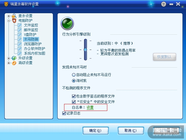 如果确认不是木马病毒的话,请在瑞星设置中对那个程序添加白名单,不过请谨慎操作。