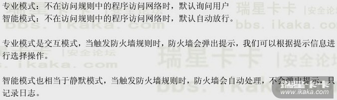 除了以上的建议,你还可以在防火墙的托盘上单击右键,查看“切换工作模式”是否选择的是“专业模式”。如果不是,选择“专业模式”即可 。