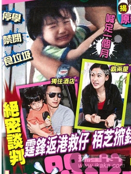 随后,谢霆锋到香港阳明山庄,探望一对儿子Lucas与Quintus。张柏芝已离港回到宁波拍戏。霆锋与两子相聚两小时后才离开,之后便返回金钟柏舍住宅。记者问他是否与一对儿子见面玩耍?他不耐烦地说:“难道跟你玩吗?”