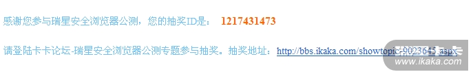 回复:瑞星安全浏览器安装抽奖活动专帖