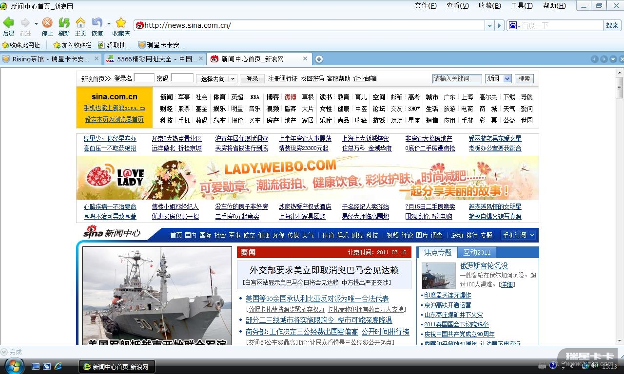 将新浪新闻网页的地址粘贴到地址栏,点回车。网页好半天不能开全。按F5也没用。