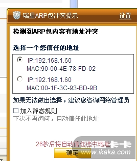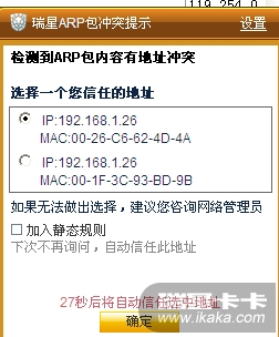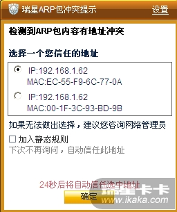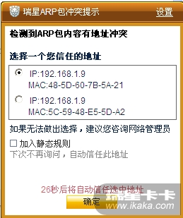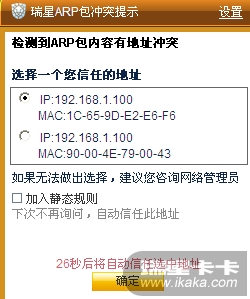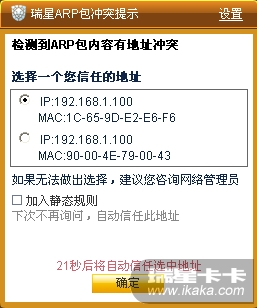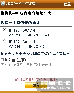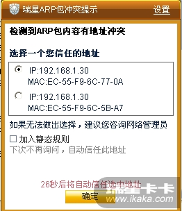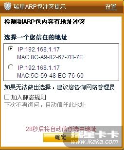 网上有一个ip冲突,全网的瑞星防火墙都会测到的!