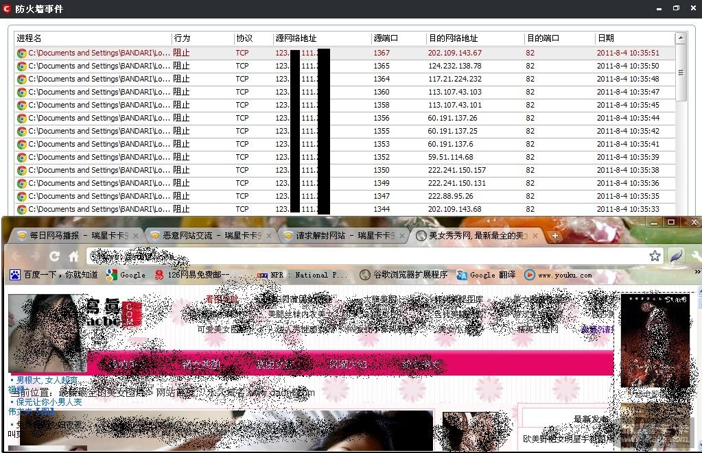 登陆你们的网站,comodo防火墙记录攻击
