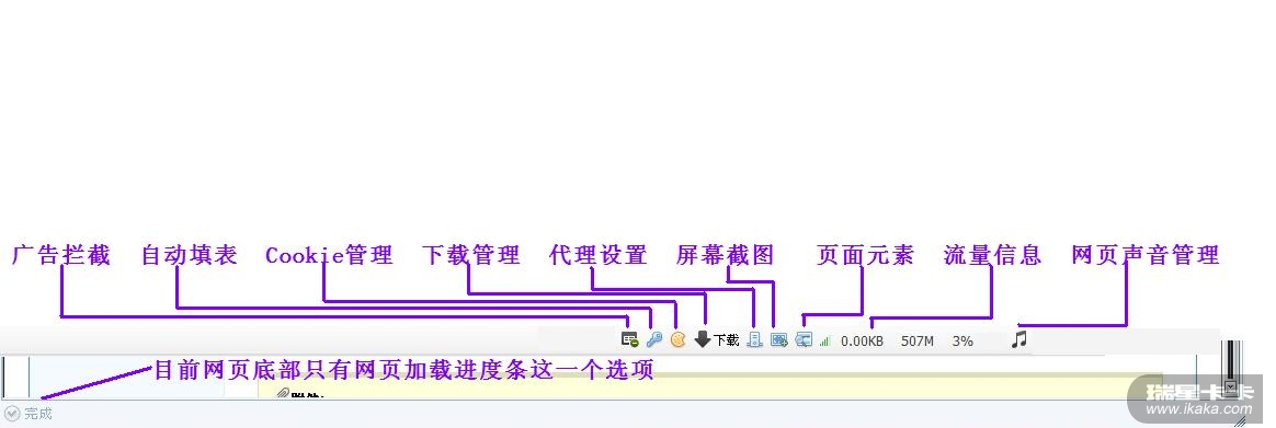 另外浏览器底部目前只有一个页面加载进度显示,过于简单后期可以逐渐增加并丰富更多功能。上图
