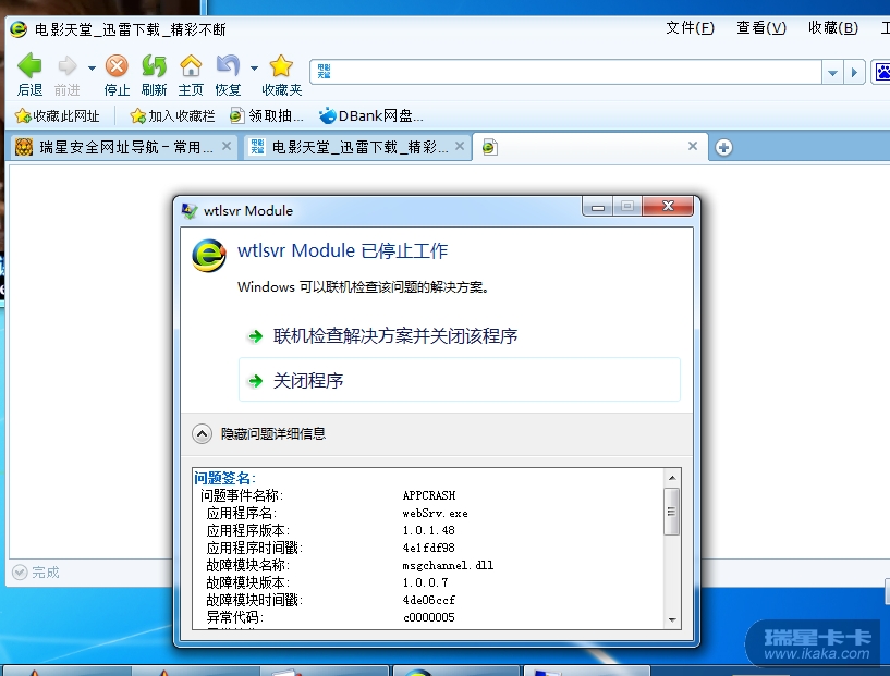 window 7 32位 旗舰版 IE 8 操作只是打开了电影天堂的一个网页