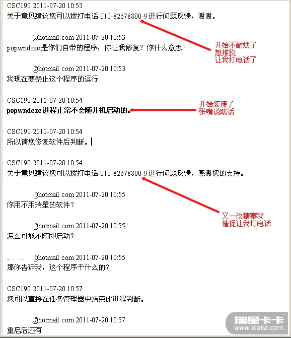 我是让大家和瑞星的人来看看,他们在线工作人员是如何“工作”的