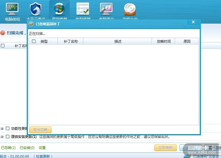 请尝试更新卡卡到最新版本之后重新扫描,或者使用windows update功能辅助判断