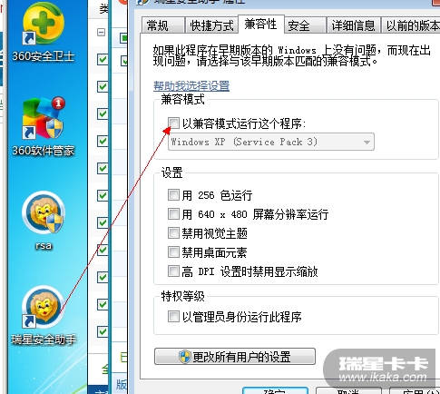 建议您尝试去掉兼容模式后再打开助手,看看是否仍会提示安装VISTA的漏洞?