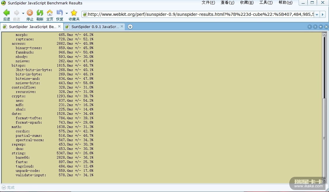 另一方在SunSpider性能测试中(
