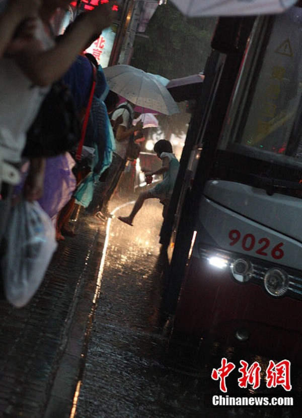 2011年7月24日傍晚,北京市出现大范围降雨天气,位于通州北苑路出现积水,公交车也难逃被淹。