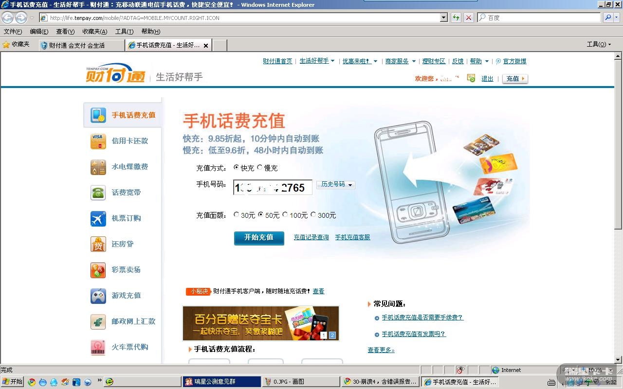 操作:登录财付通,点击红框链接