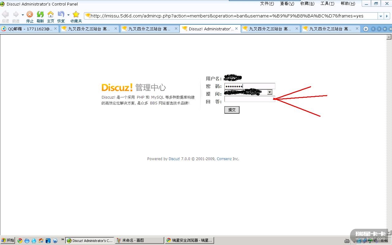 http://imissu.5d6d.com/admincp.php?action=members&;operation=ban&username=%B9%F9%B8%BA%BC%D7&frames=yes进行后台登录,如图