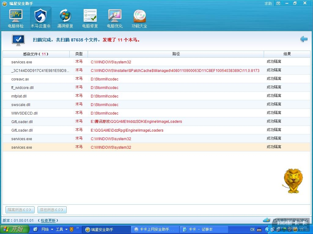 查看完整版本: 卡卡助手木马云查杀发现木马,瑞星没杀出毒,另附了查杀的图.