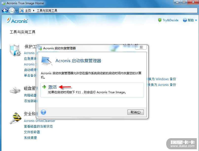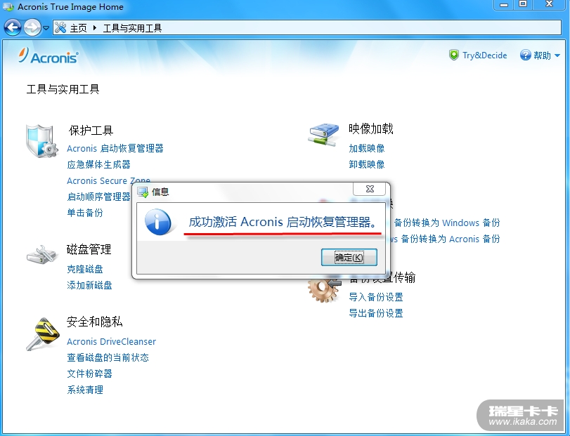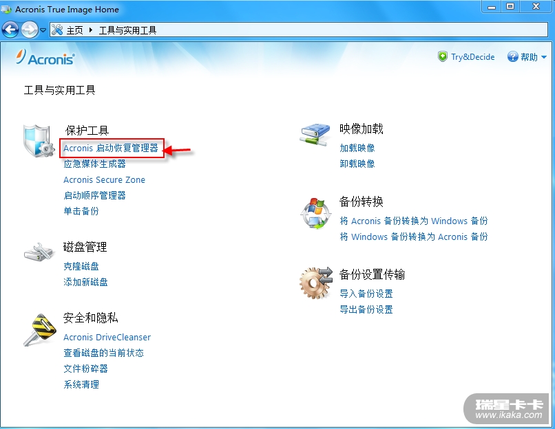 安装Acronis True Image后,按下面三个图示操作,就相当于给您的电脑装上了一只“眼睛”,专门盯着引导区病毒。