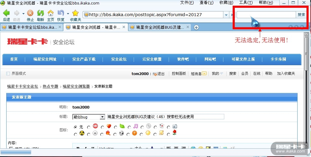 瑞星安全浏览器BUG及建议(46)搜索栏无法使用