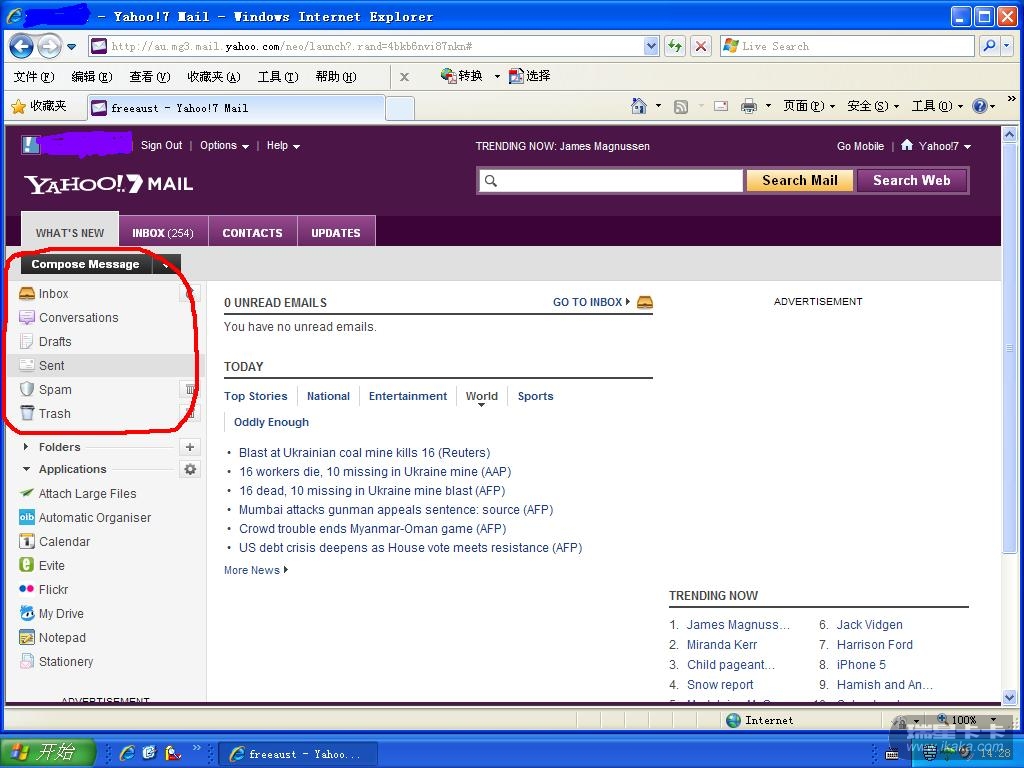 原来有做GHOST, 释放之前的GHOST后, 现在没再误杀MRXSMB.SYS, 关机问题暂时没再发生, 但是YAHOO的文件夹仍然打不开. 只能在没安装瑞星的机上才能打开. 杀软即使"禁用所有电脑防护"并停止防火强保护都不行. 7月23...4号以前不是这样的. 现在只剩"GO TO INBOX'能进入收件箱, 左边红圈内的按钮, 一个都不起作用. 只能从没安装过瑞星的系统(另一个硬盘)登陆YAHOO,才能进入文件夹.