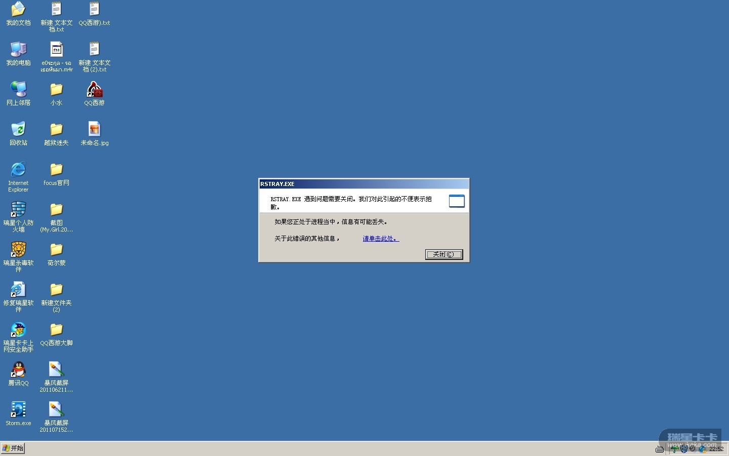 趁錯誤提示框還沒有彈出時,用鼠標狂點右下角的瑞星小綠傘