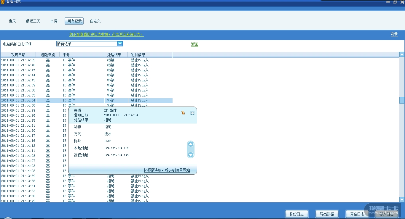 就是瑞星上面备份出来的日子 这么高的 防御我用了 两天就有 2000条防御 日志了 这么高正常吗 ???