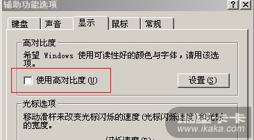 楼主看看控制面板中是否有辅助功能选项或者运行“access.cpl”看看是否勾选了3楼图中设置,如果没有找到“使用高对比度”的设置项,请跟帖反馈。