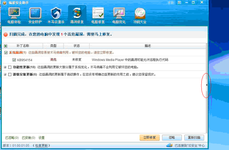 windows media player可能允许执行远程代码 漏洞无发修复 每次修复后都显示修复成功 从新启动后 却在忽略项里面 这到底是怎么回事用的版本是01.00.01.05