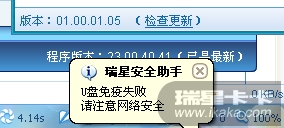U盘中已有U盘免疫的文件夹,但是仍提示免疫失败,瑞星还会拦截