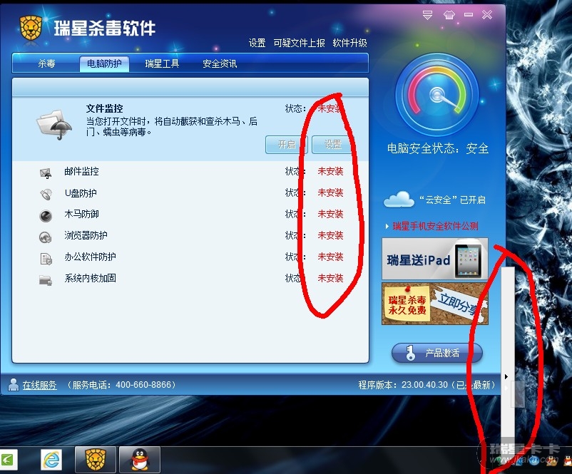 建议楼主先完全卸载瑞星杀毒,之后卸载瑞星的软件部署系统,运行regedit进入注册表编纂器,定位到HKEY_LOCAL_MACHINE\SOFTWARE\rising,删除所有键值,之后到官网下载最新版重新安装使用