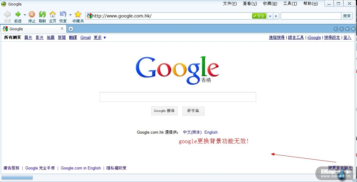 IGOOGLE没问题....你把google语言切换成繁体中文(简体是阉割版没更换背景这功能),然后在google搜索页面右下角就有背景更换了,这个没反应....