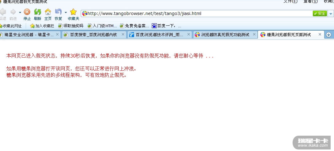 这是用瑞星浏览器测试假死和崩溃的页面(我的ie浏览器版本:ie8.0)。