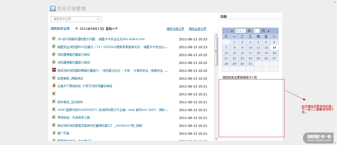 建议在空白处和瑞星浏览器设置中,增加设置保存时间选项不一定人人都要保存两个月吧...