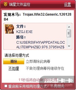 建议楼主升级瑞星至最新版,全盘查杀(勾选深度扫描,可能时间会长些),彻底删除病毒