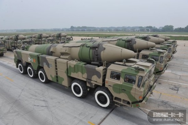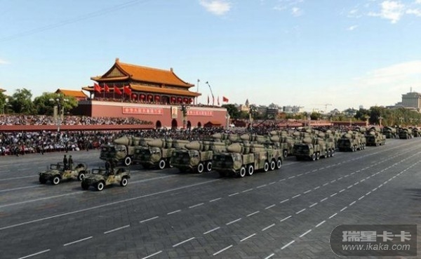 资料图:国庆60周年阅兵东风-21导弹进行演练。