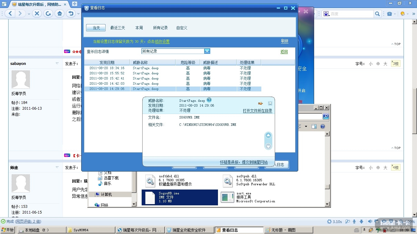 我的瑞星是升级到最新版的,以前我也看到有搜狗的软件误报,但好像不是搜狗五笔的软件,这个误报是搜狗五笔里面的一个文件,