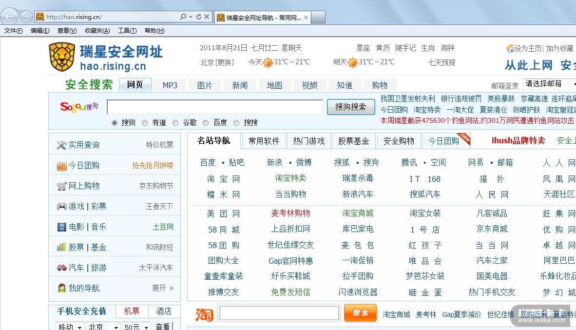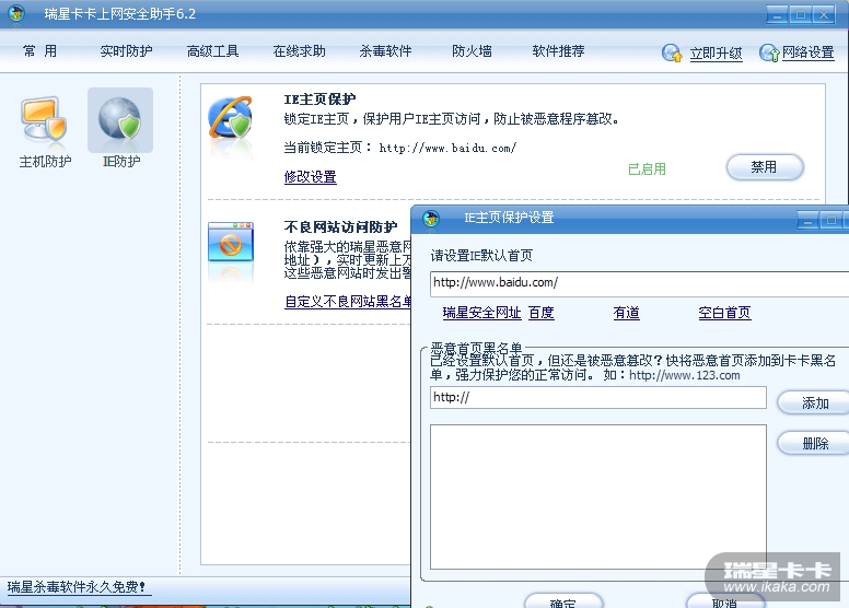 建议楼主使用瑞星卡卡上网助手来对您喜欢的网页进行绑定,具体方法如下: